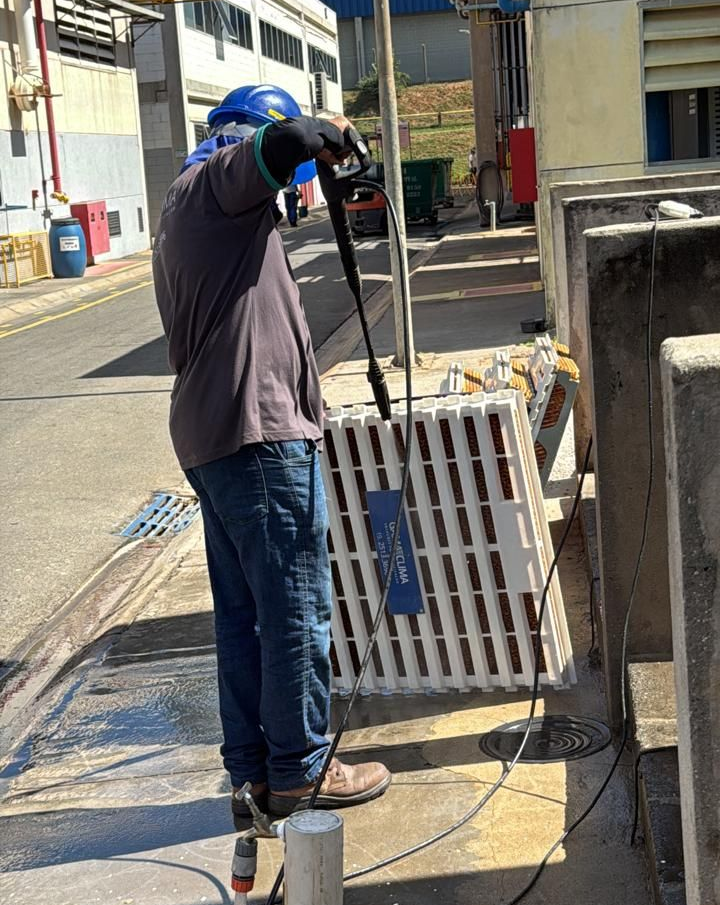 de modo que a contaminação dos climatizadores resultado de acúmulo de fuligem, poeira e bactérias, que contribuem para a deterioração dos equipamentos e má qualidade do ar no ambiente, sejam evitados. Proporcionando, através da higienização mensal dos aparelhos, um ar mais saudável e por consequência melhor eficiência e rendimento do aparelho.